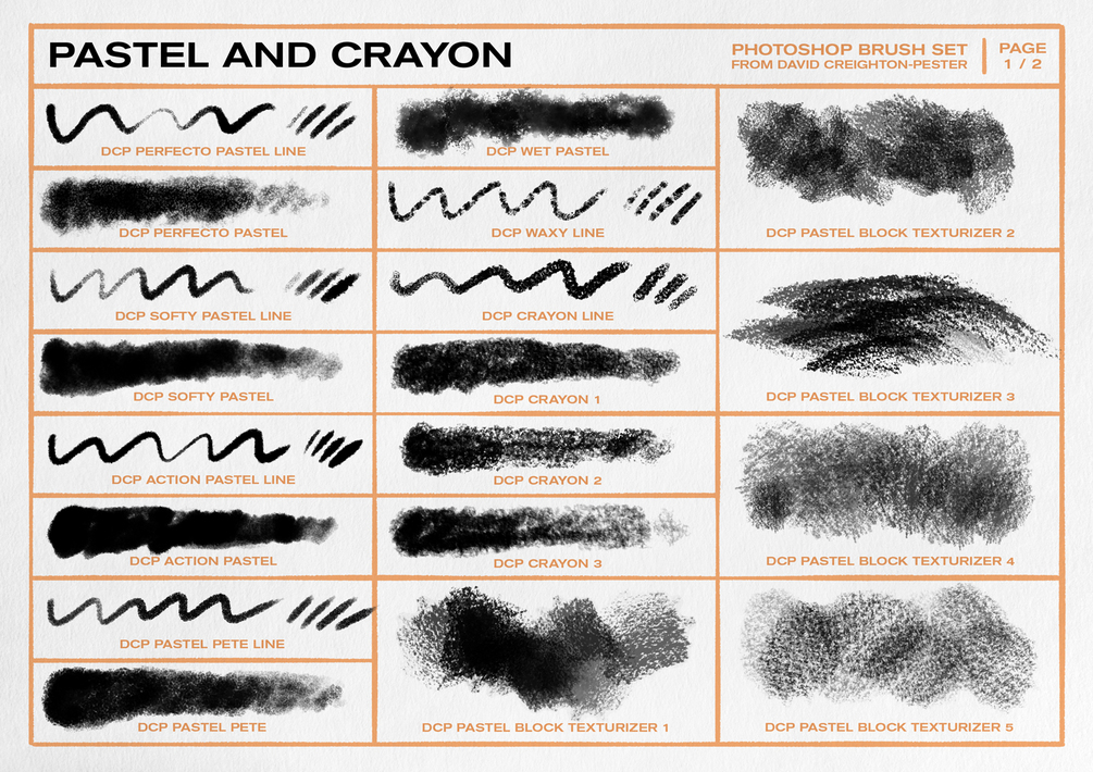 19 brushes for Photoshop inspired by pastel and crayon, along with 4 additional texture stamps