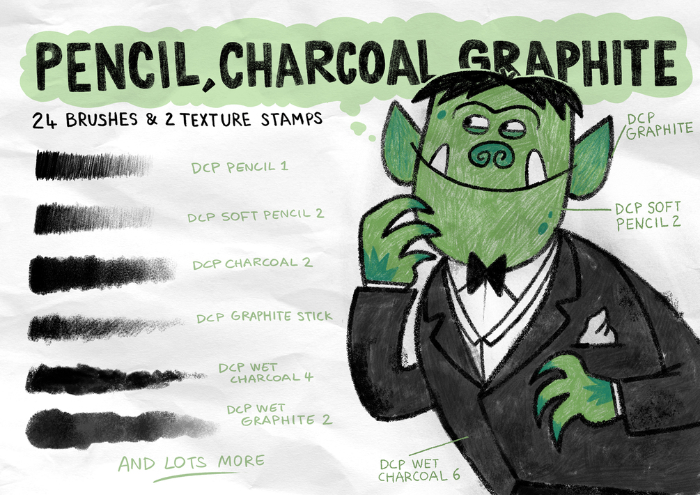 David CP's Pencil, Charcoal, Graphite brush set for Photoshop