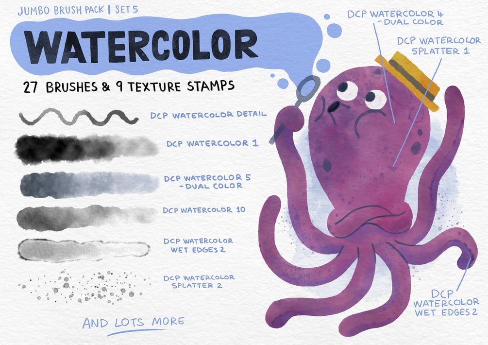 I've used a lot of the brushes in this pack for my published picture book illustration work, and hope they can be useful to others too!